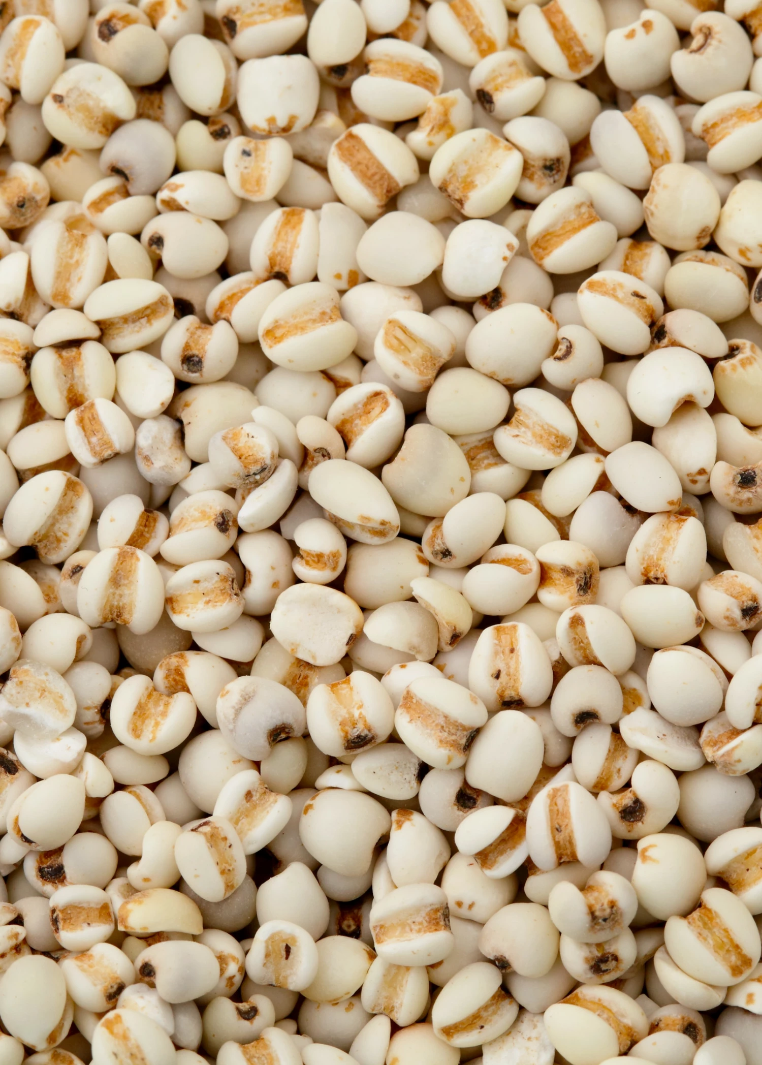 Job’s Tears is a tropical grass native to Southeast Asia, and has been naturalized in Southern America as well as the Caribbean. Job’s Tears is a member of the grass and rice family of plants (poaceae). Wide ornamental blades grow upright and arch at their ends. Long, beautiful spikes of grain are produced in the warm seasons, swelling into gorgeous strings of seeds that resemble pearls, or tears. This unique grain is often described as resembling barley in both size, color and form.